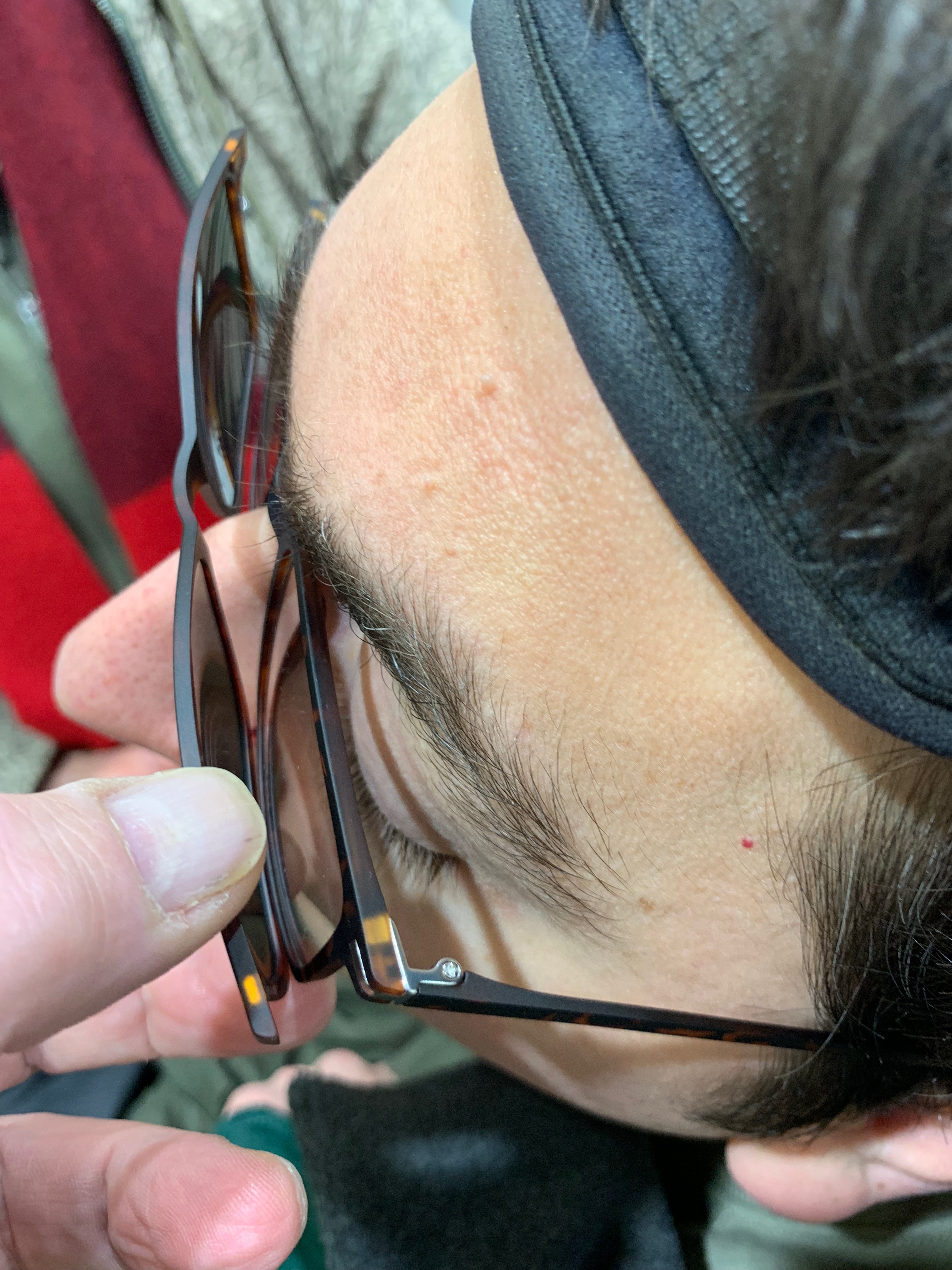 Early in the week, we went to see Pádraig’s absolutely fantastic new optician who is fitting his new glasses and who came up not just with a new way to keep his eyes open, but also with a frame, that could be used as an ordinary glasses frame as well as sunglasses with magnetic pop-on shades.