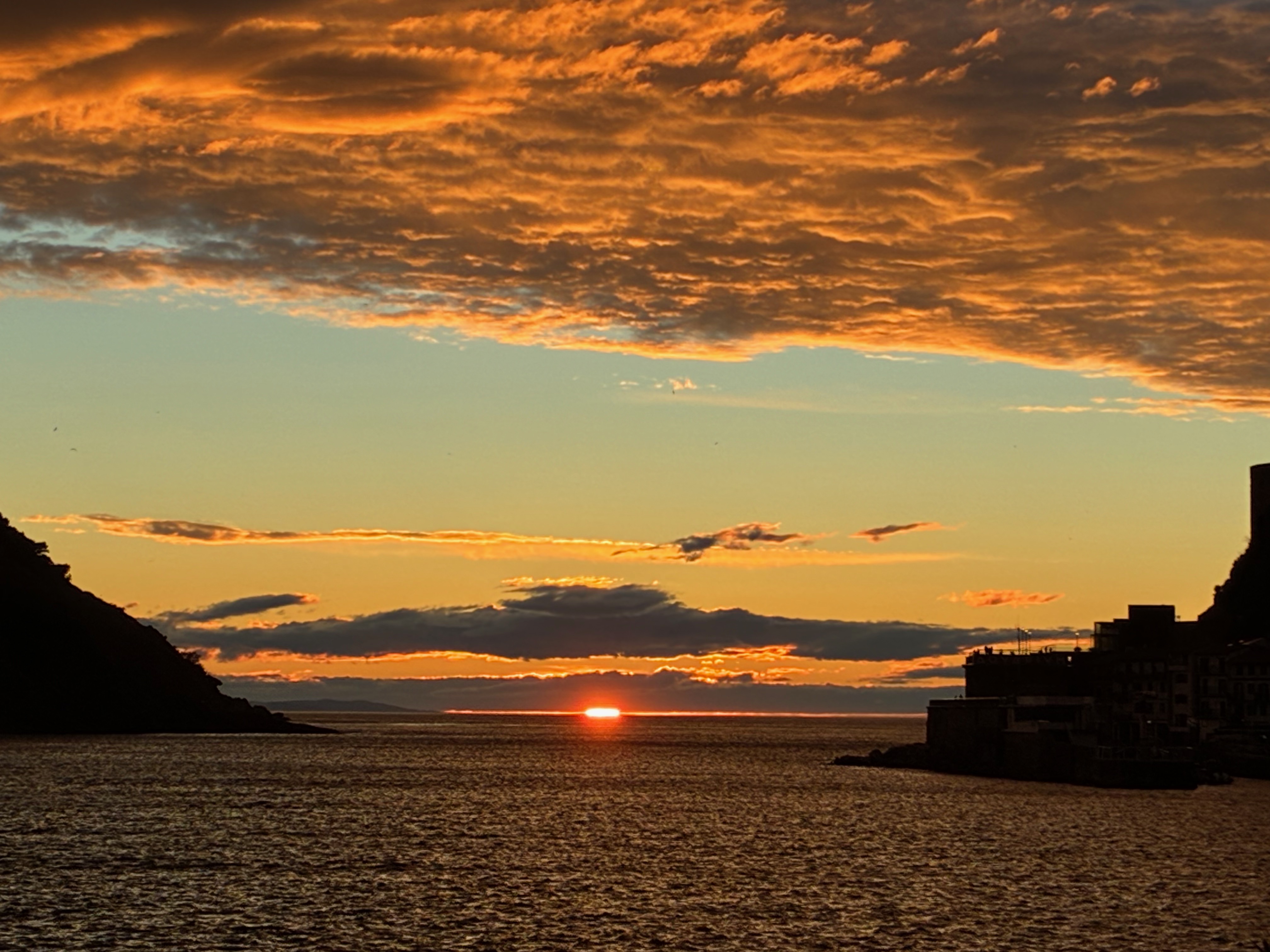 The sound of summer is coming up from the beach below. Children screaming. Someone trying to earn a few euro playing the trumpet accompanied by a karaoke machine. The waves crushing onto the beach.