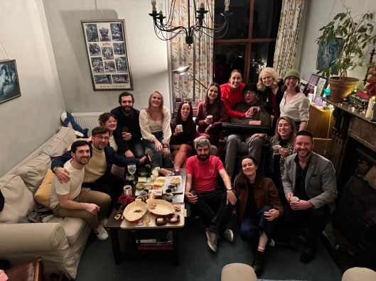 Some could not join because they were at a wedding. One had just become a father for a second time. Another is now living permanently in Thailand. One arrived late because he had just secured temporary tenancy of a recording studio where he will produce the soundtrack of a new movie production. Another will be getting married in the summer and hopes the ‘sale agreed’ on their new home will not fall through. One shared her new book while another gave a fantastic rendition of her latest song. Some have become national celebrities. A few came early because they were on the way to a family Christmas party or had to go home on the train to the country. A whole group left to join, as they have done for many years, Damian Dempsey at one of his pre-Christmas concerts, running every evening over a whole week.
