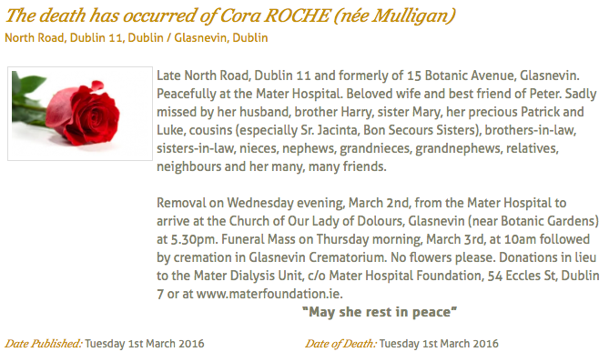 This morning, I walked with Pádraig to Cora’s requiem mass. Again, he had ‘told’ us that he wanted to go. And it was so good that we went. Both the priest in his homily and a family friend who talked about Cora’s life with Peter mentioned Pádraig and the role he played in their lives a number of times. This was not child minding. This was family and love. They were so happy that Pádraig had come to Cora’s funeral mass.