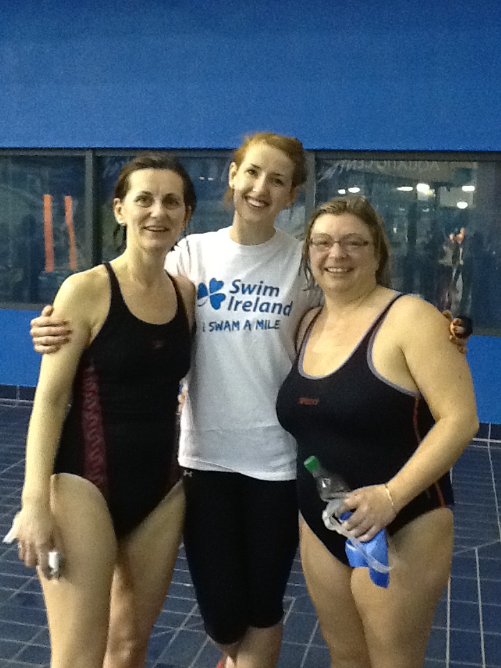 This week has been a week of excitement building up for last night’s big “Swim a Mile” event in the National Aquatic Centre (NAC) in Dublin, where Lynn and Irene swam, for the first time in their life, a mile in a competition. In the event, they both finished up with a fantastic under 52 minutes! There are pictures before, during and after later in the blog.