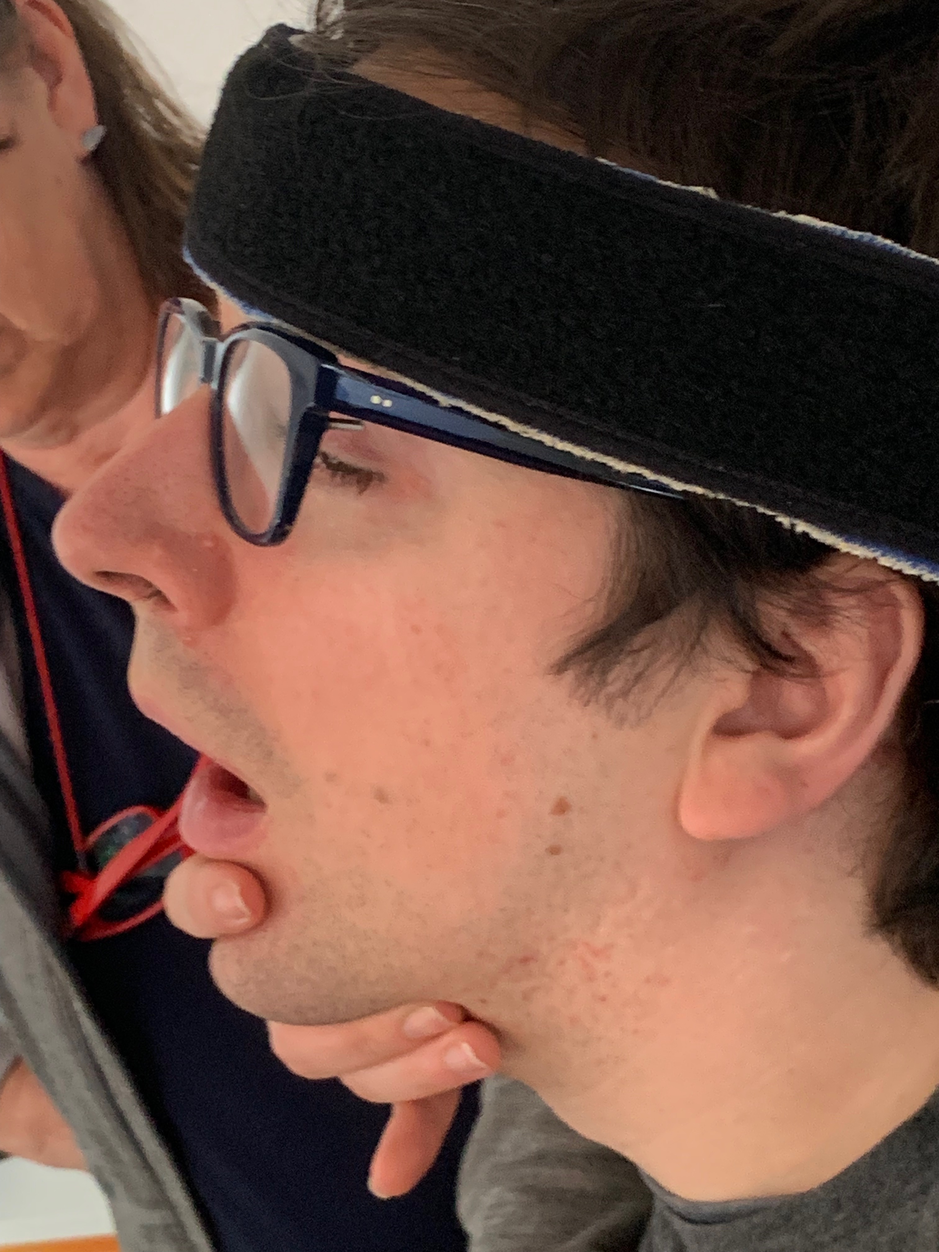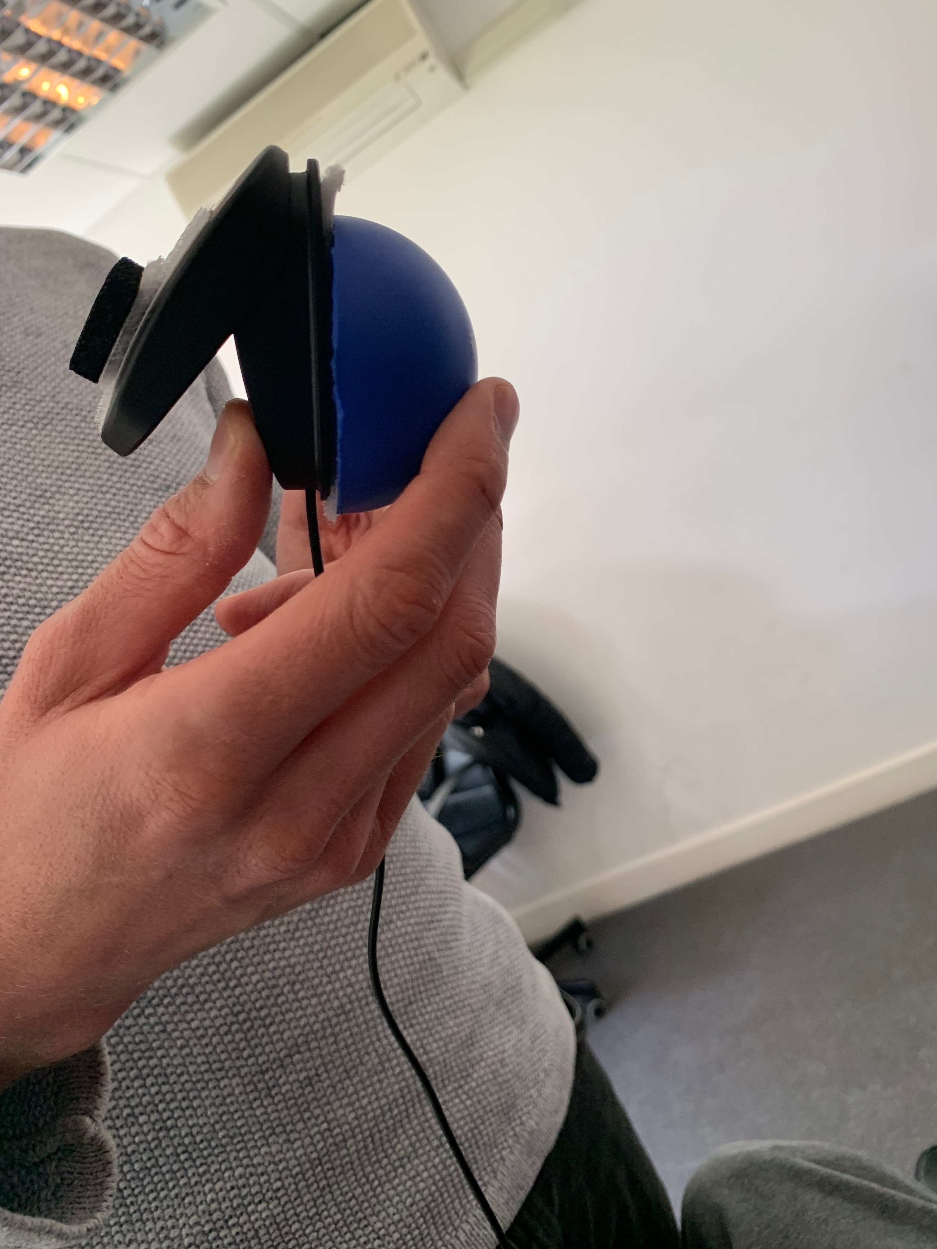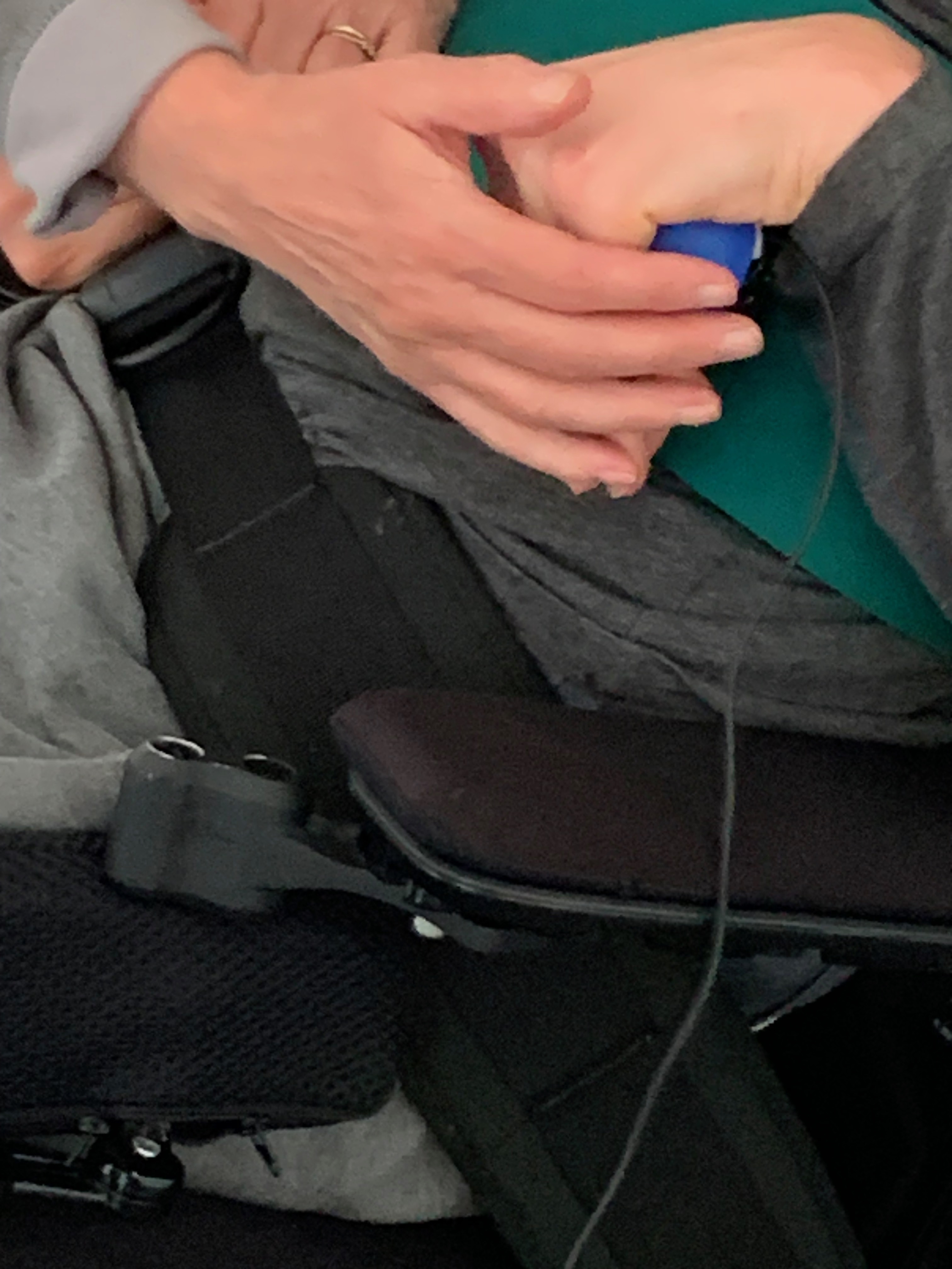After a long break, Pádraig had another session with the UCD PhD student using switches to play music. This time, they were trying off-the-shelve switches – although the Handscupe with the appropriate attachments was there too.